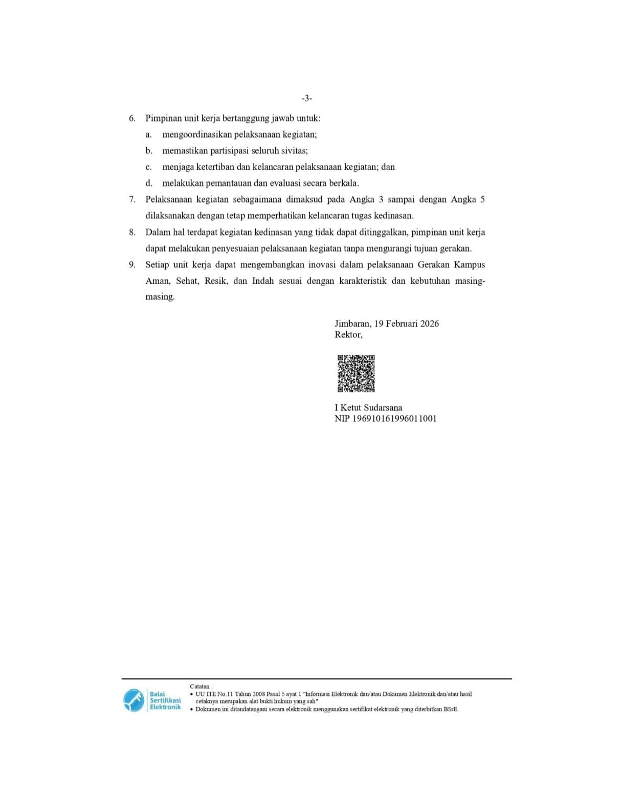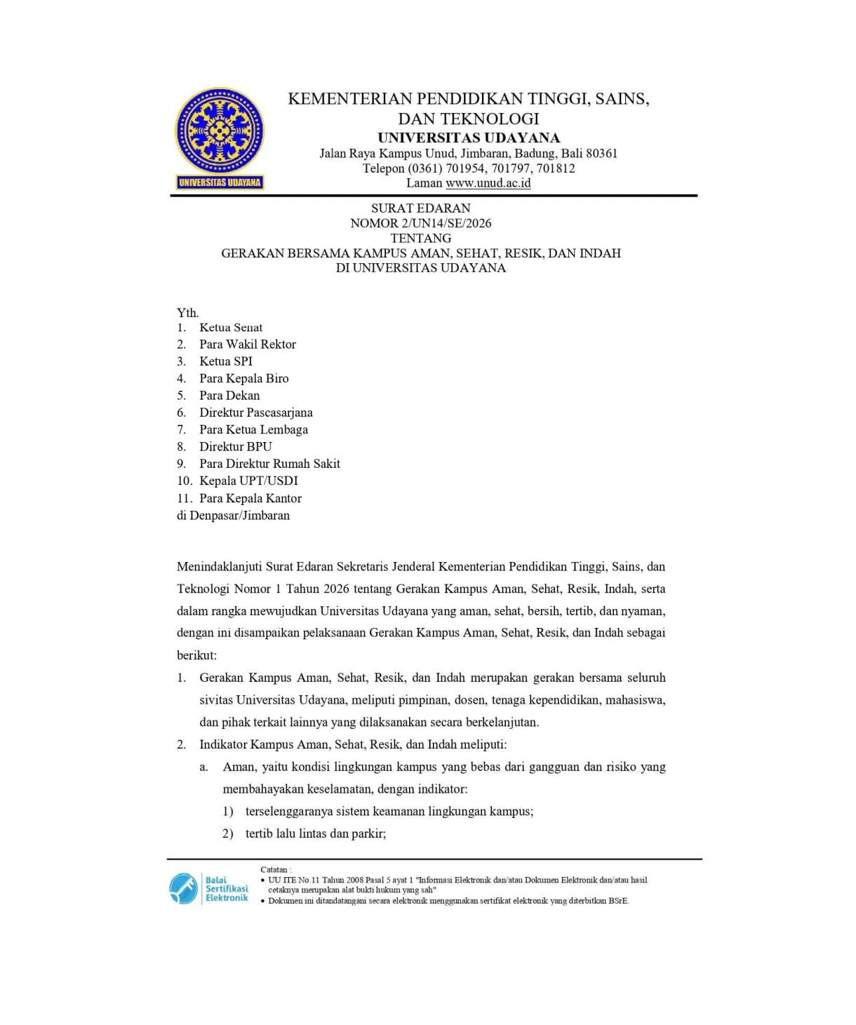 Following up on the Udayana University Rector's Circular Letter No. 2/UN14/SE/2026 concerning the Joint Movement for a Safe, Healthy, Clean, and Beautiful Campus, the Faculty of Medicine at Udayana University is ready to support and implement this movement sustainably.